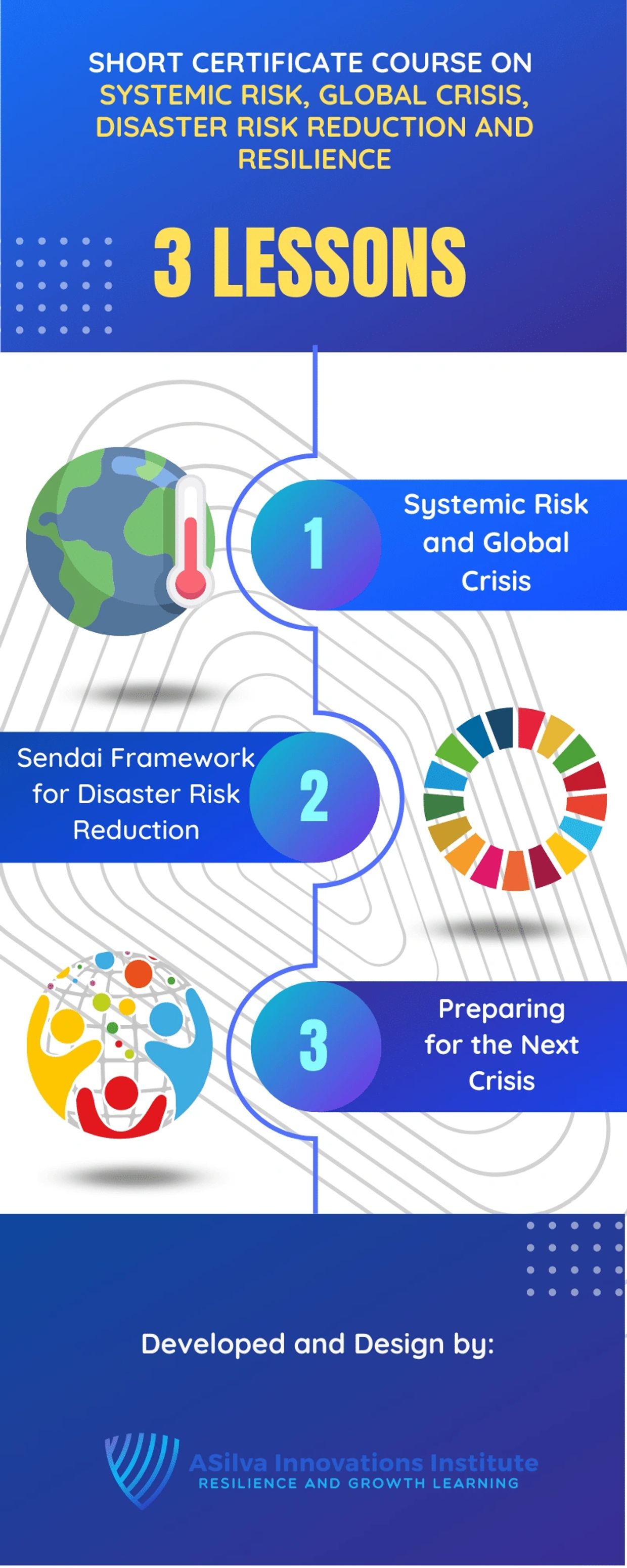 Welcome to SYSTEMIC RISK, GLOBAL CRISIS, DRR & RESILIENCE—a transformative online certificate course and guide kit designed to equip you with the knowledge and skills necessary to navigate global crises and foster resilience.